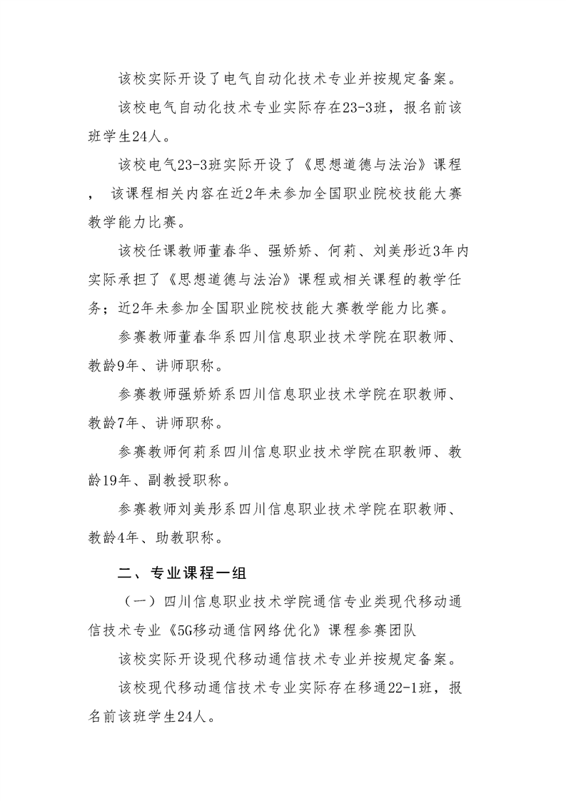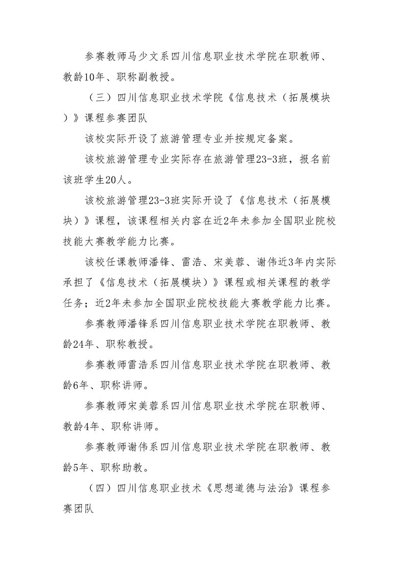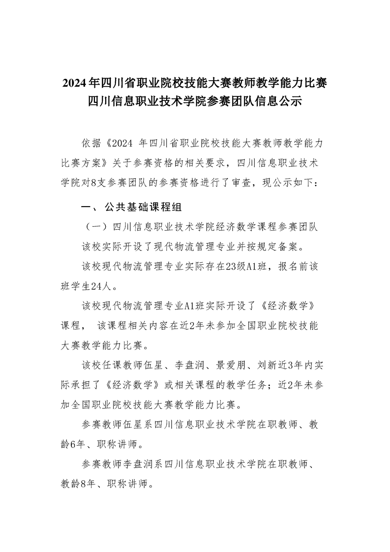 2024 年四川省职业院校技能大赛教师教学能力比赛参赛团队信息公示
