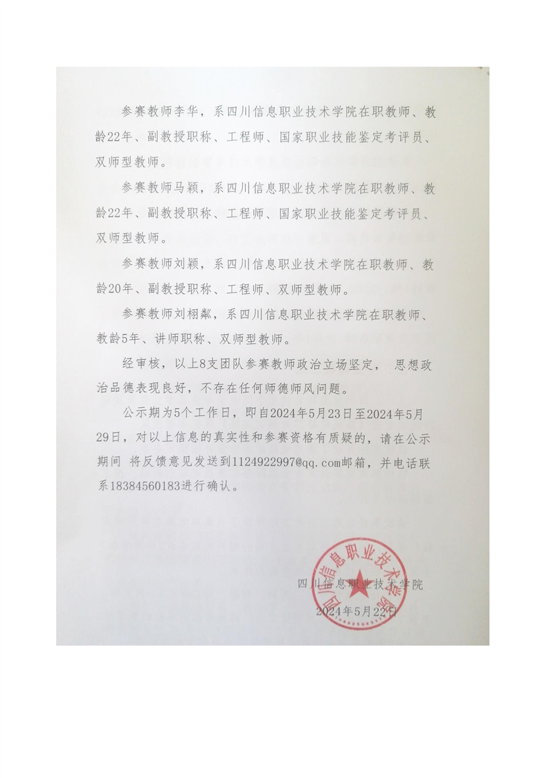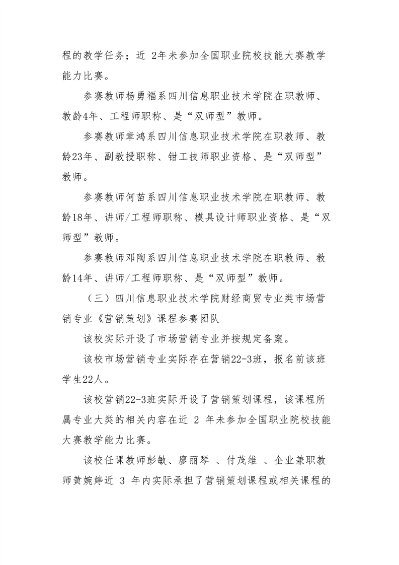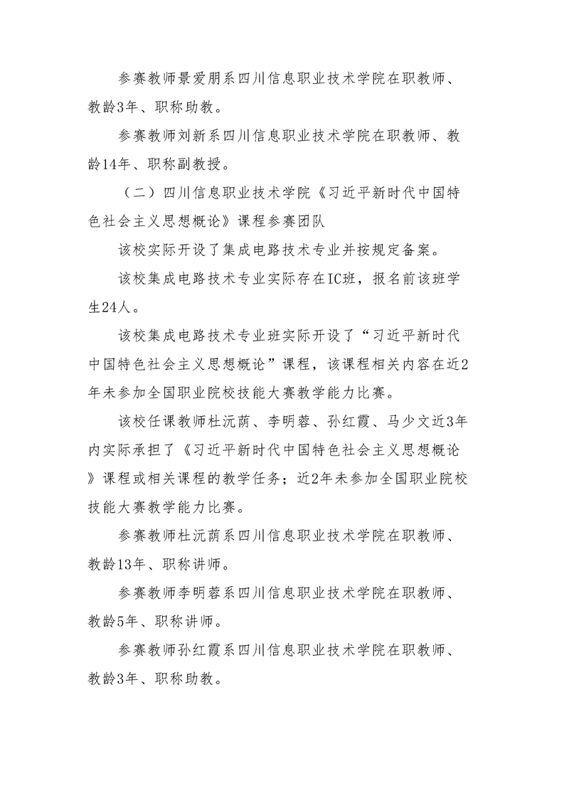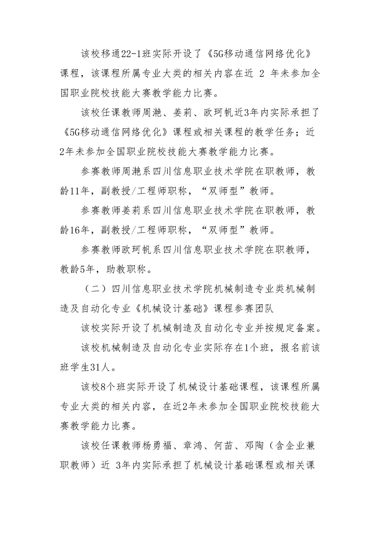 2024 年四川省职业院校技能大赛教师教学能力比赛参赛团队信息公示