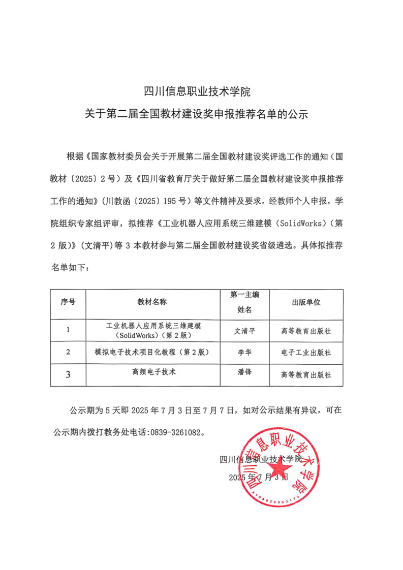 关于第二届全国教材建设奖全国优秀教材申报推荐名单的公示