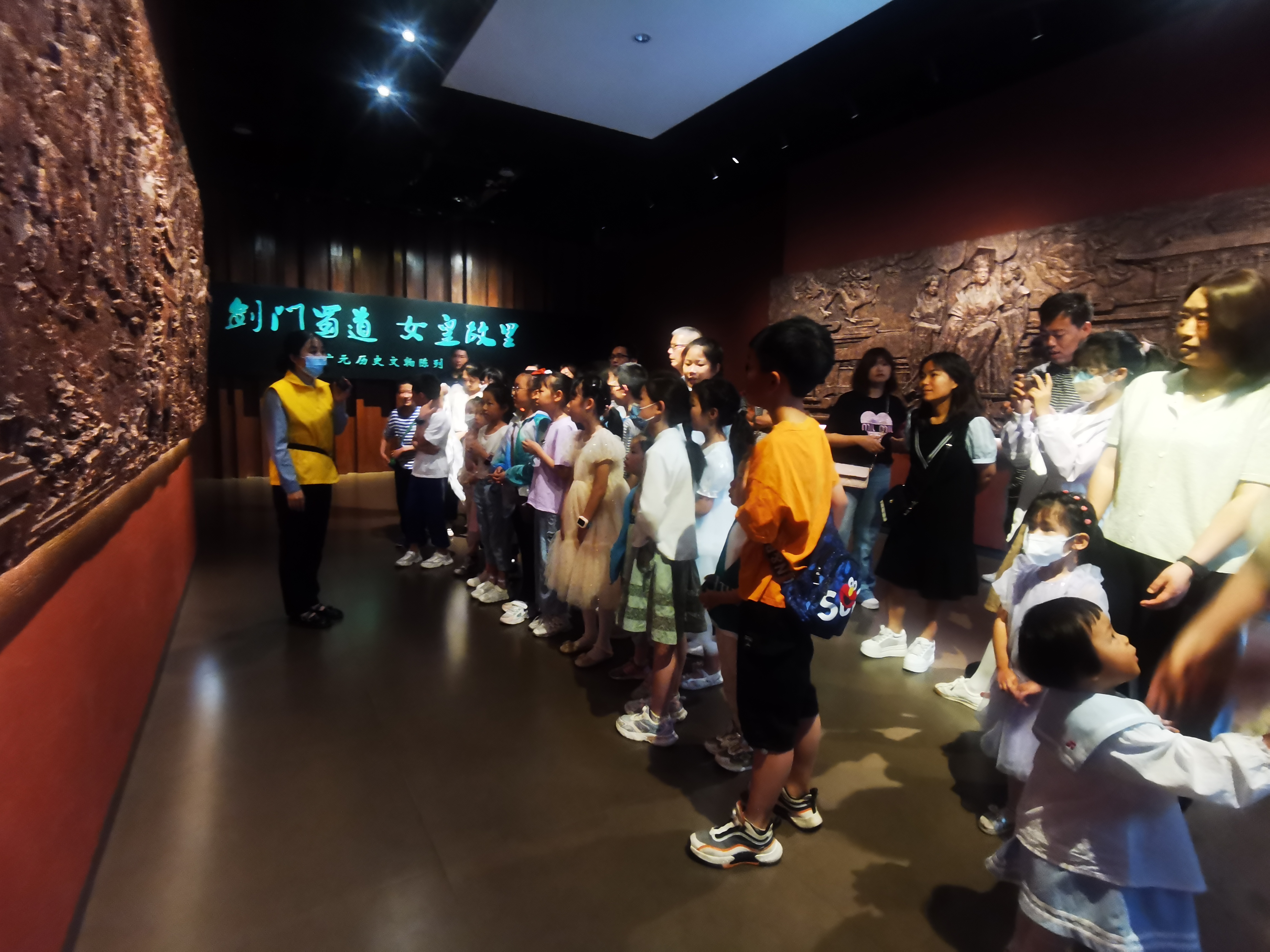 孩子们在讲解员的带领下认真参观了展厅内的文物,所有文物记录了广元市各个历史时期的政治、经济、文化面貌,将巴蜀文化的历史长河直观地展示出来,孩子们回忆往昔,感慨当下,徜徉在历史长河中,仿佛穿越时空隧道,共同感受历史巨变。