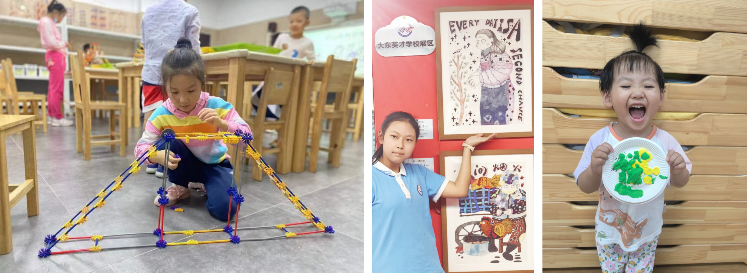 手工绘画表达出孩子们天马行空的创意:彩色扎染绘出斑斓世界,创意搭建体现立体童趣……作品形式涵盖扎染画、水彩画、油蜡画等类型,每一件充创作都传递着纯真与快乐。