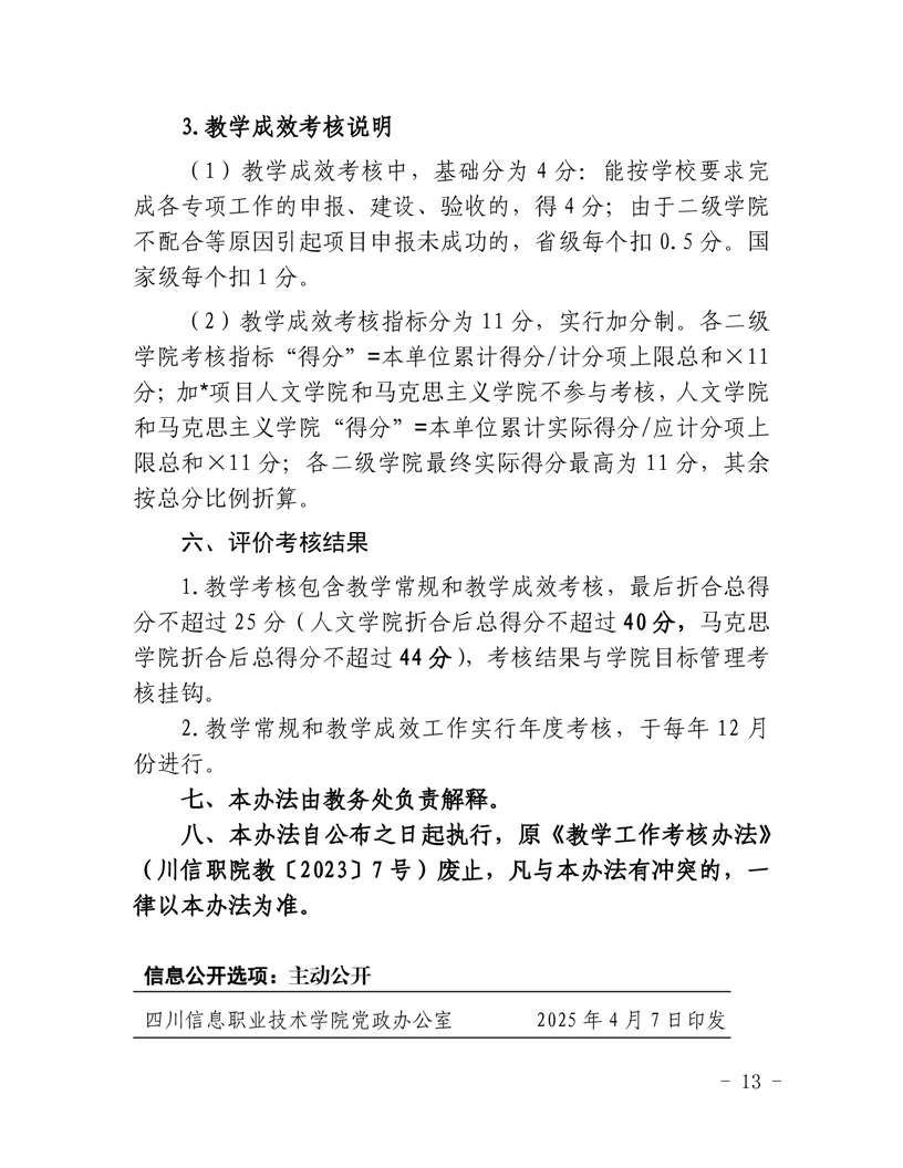 教学工作考核办法