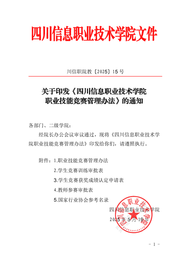 职业技能竞赛管理办法(川信职院教〔2025〕15号)