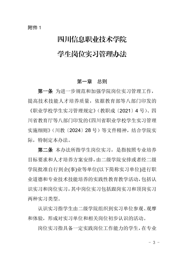 学生岗位实习管理办法(川信职院教〔2024〕16 号)