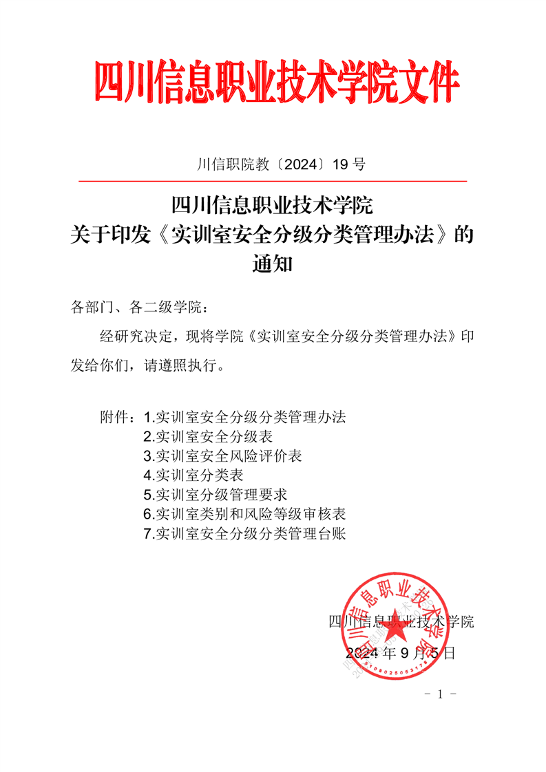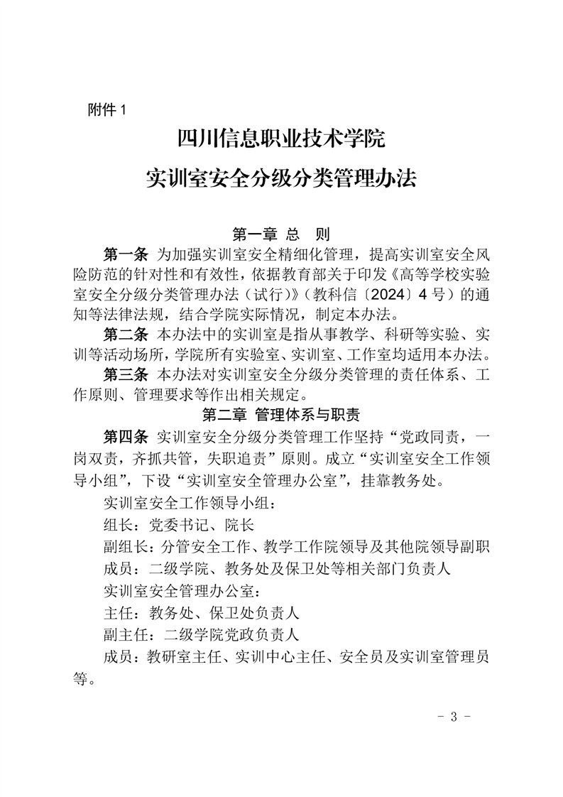 实训室安全分级分类管理办法(川信职院教〔2024〕19 号)