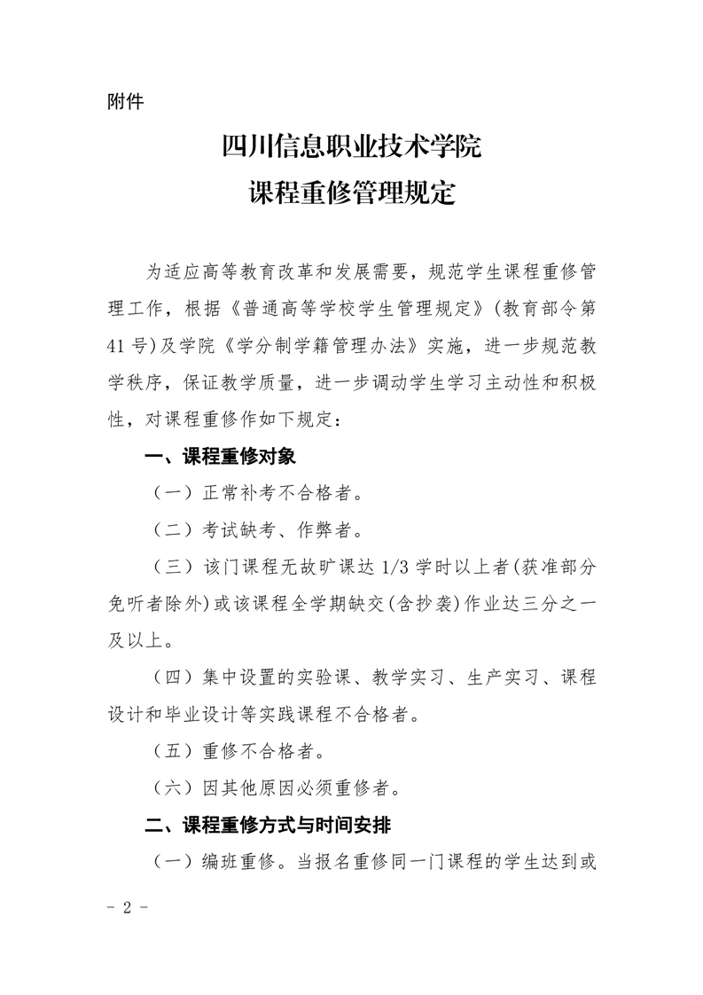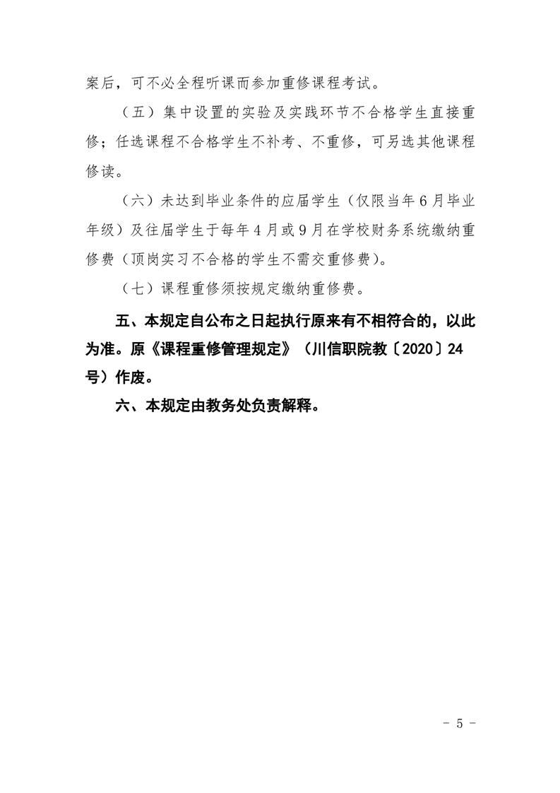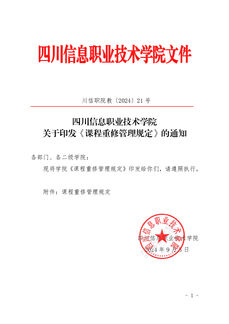 课程重修管理规定(川信职院教〔2024〕21 号)