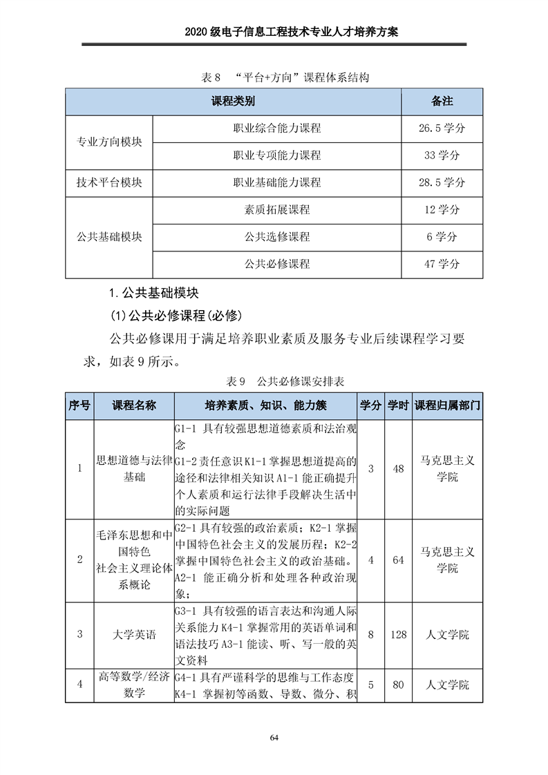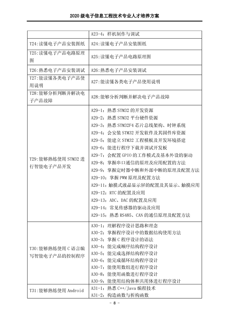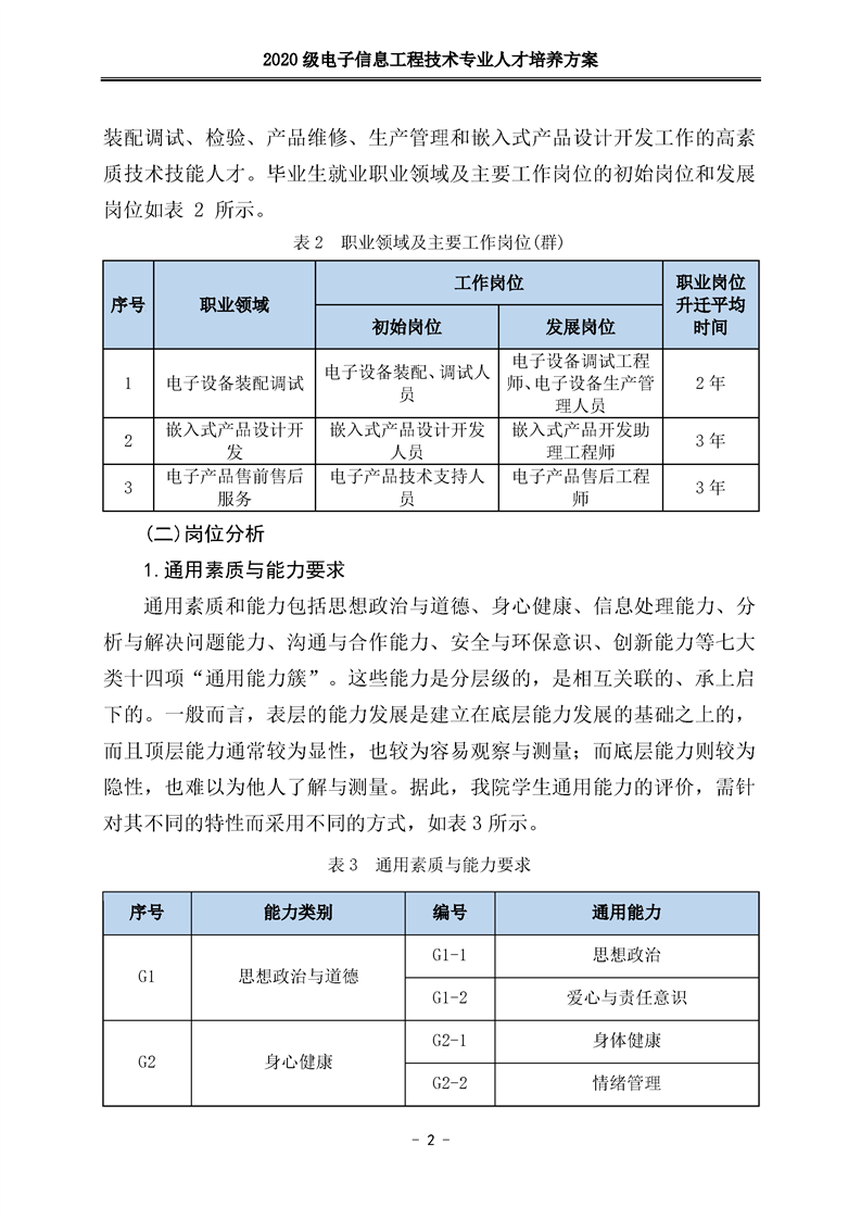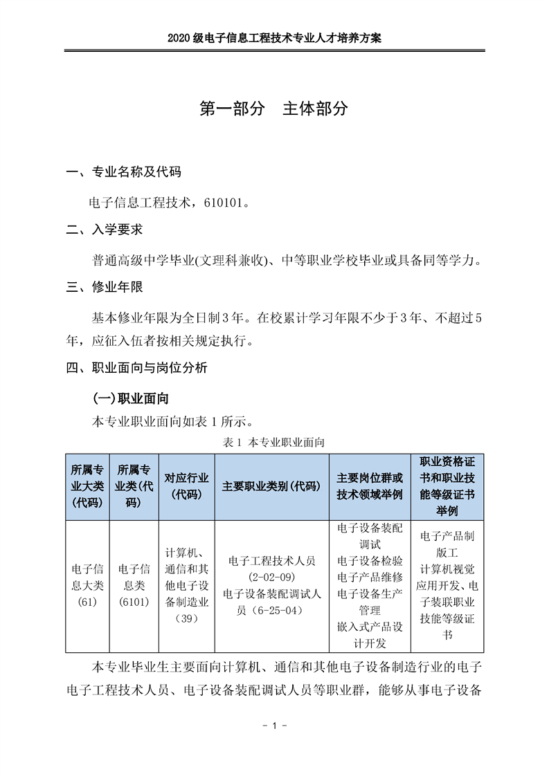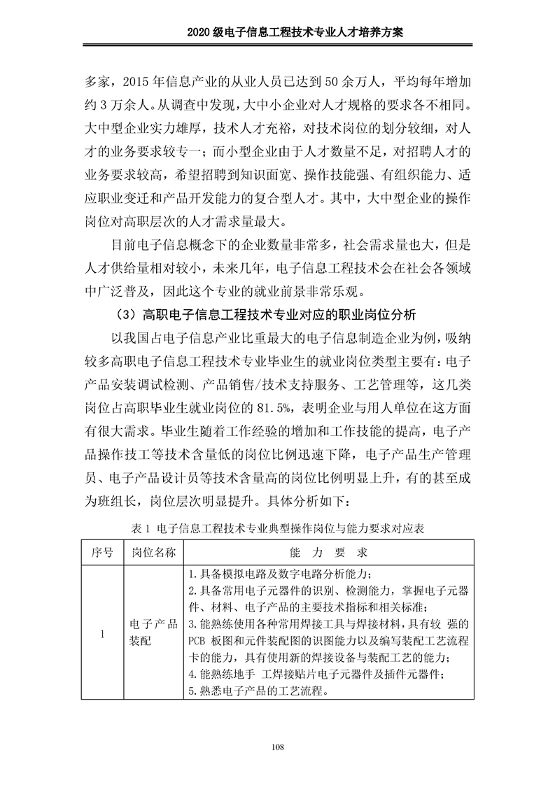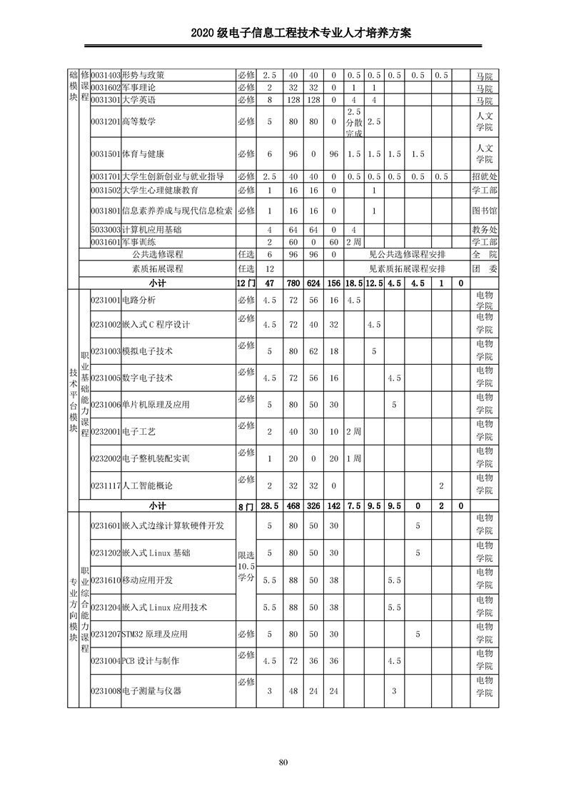 2020级电子信息工程技术人才培养方案